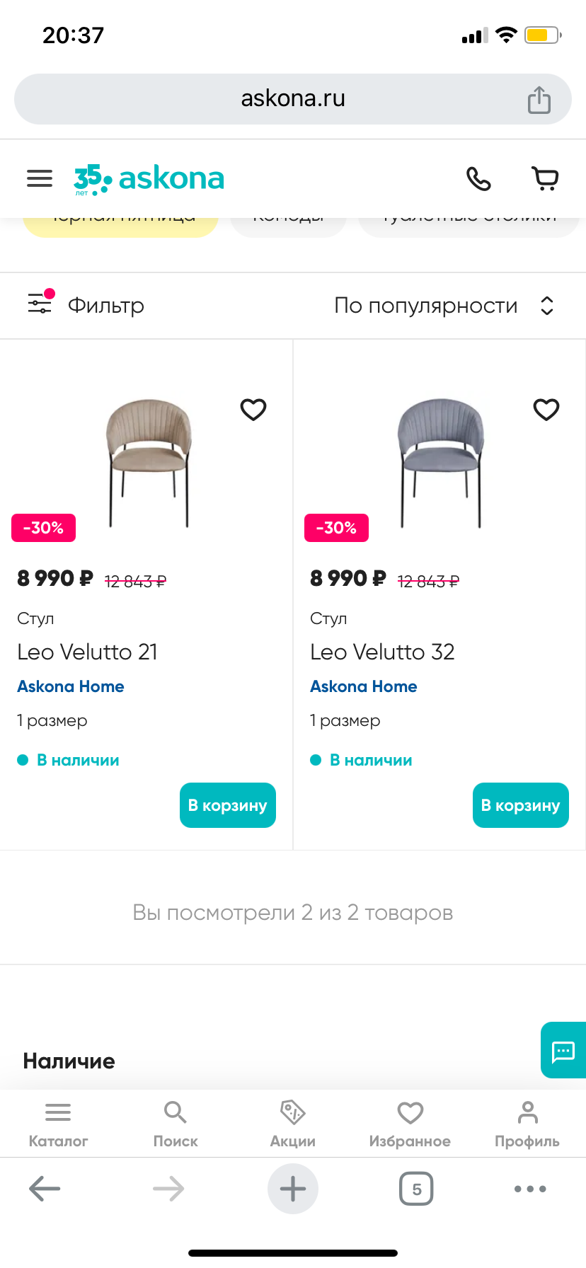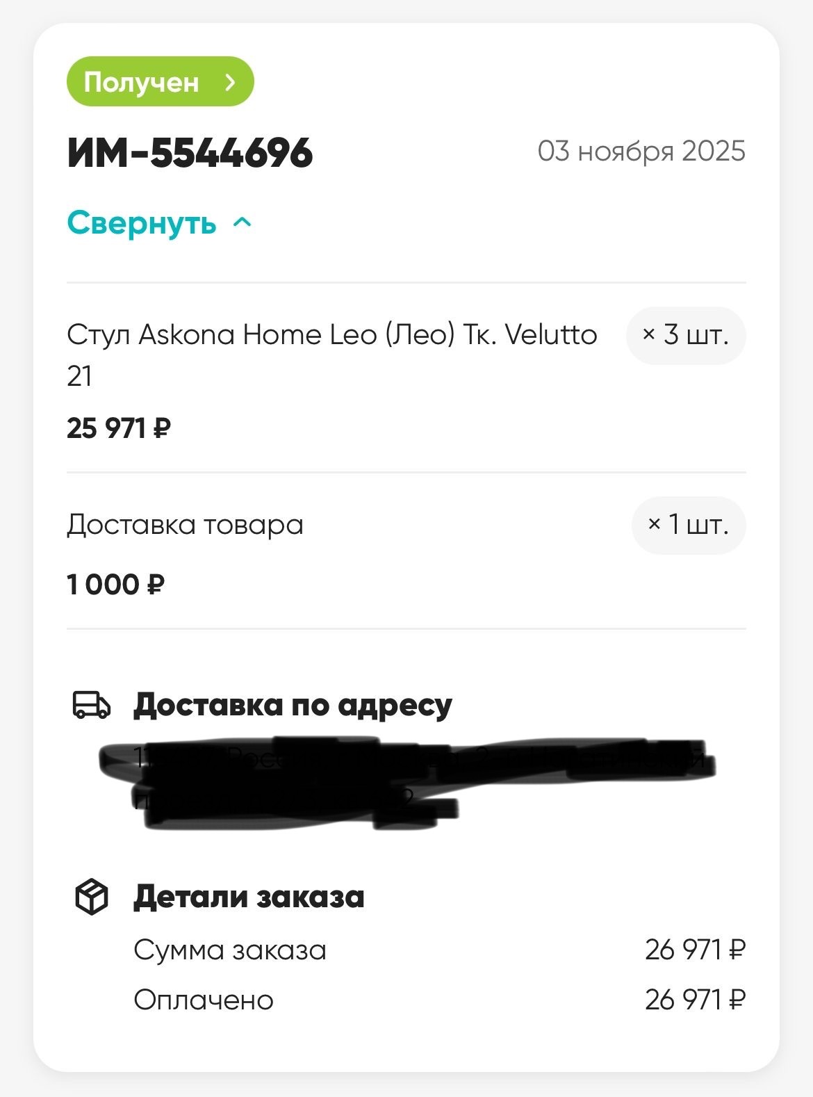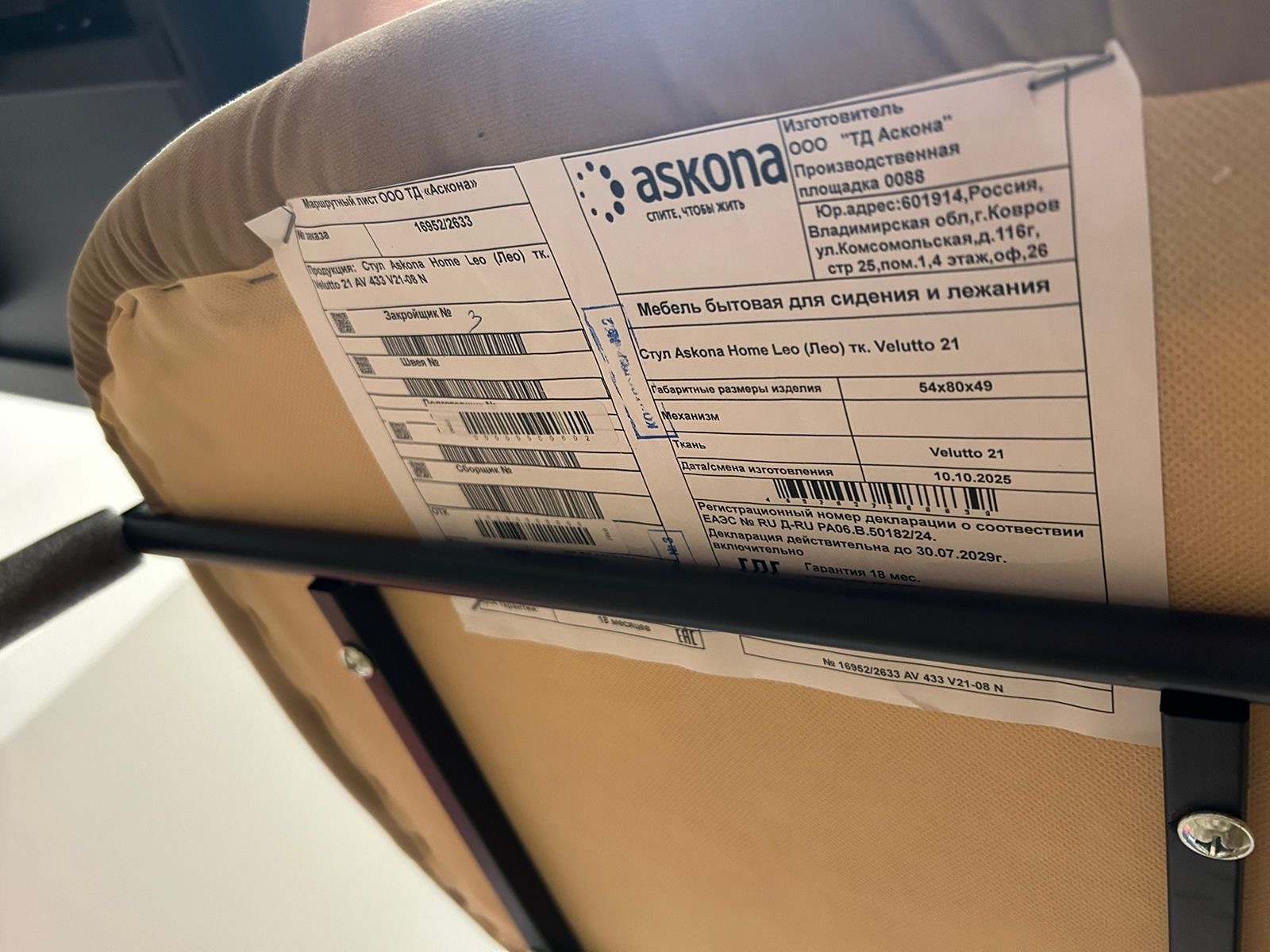 Скажу сразу, месяцем ранее купили в Асконе кровати с матрасами, все прошло нормально. Именно поэтому решили и стулья на кухню купить у них, казалось бы что может пойти не так... Сходили в Аскону на Пражской, посидели, выбрали и дома заказали. Каково было удивление, когда 06.11.2025 приехали стулья... другого цвета, хотя бежевый на сайте всего один. Я подумал, наверное свет так падает, помле чего мы поехали в магазин и убедились, что дело не в свете и менеджер подтвердил, что бежевый представленный в магазине это тот бежевый который мы заказали на сайте. Нам сказали, обращайтесь в поддержку, ладно, крупная компания, думали вопрос решим за один день...