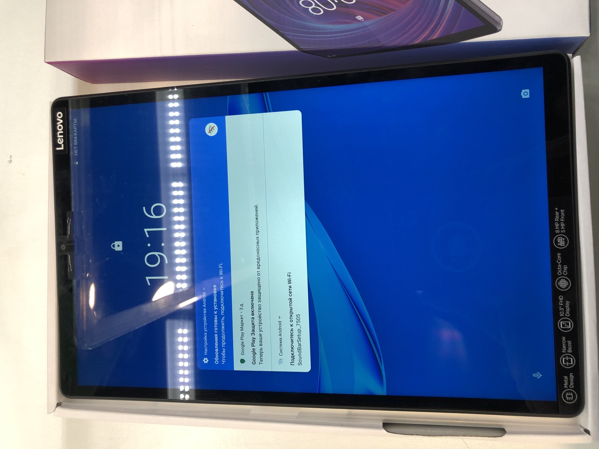 Планшет выдаётся упакованным и закрытым. На моменте вручения подарка выясняется, что один пиксель битый(вернее выгоревший)
