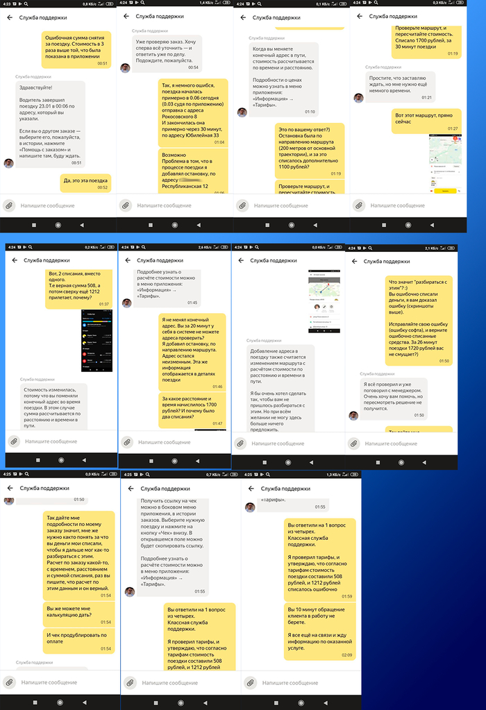 Для ЛЛ: За поезду стоимостью в 500 рублей Яндекс.Такси дополнительно списал 1200. Служба поддержки Яндекса расписалась в своей беспомощности.
