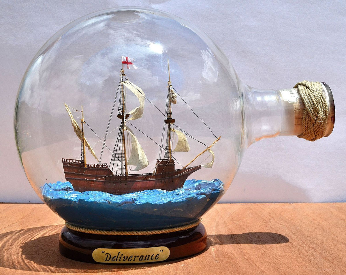В рассказе «Кораблик в бутылке» Клиффорд Саймак решил поразмышлять на тему бессмертия и лекарства от всех болезней. Действие рассказа происходит на Меркурии, в городе Нью-Чикаго. Люди давно освоили космос и потихоньку заселяют солнечную систему. Главный герой, местный репортёр Шерман Маршалл, узнает в баре от давнего приятеля, что тот добывает загадочные кристаллики для одного профессора, живущего на солнечной стороне Меркурия и управляющего там санаторием для неизлечимо больных. Старик любит приврать, да и все рассказанное им кажется странным. Помимо всего прочего он утверждает, что живёт на Меркурии уже более двухсот лет. Как можно верить в подобное? Однако вскоре старика убивают, а кристаллики пропадают. В это же время к главному герою обращается с просьбой один скользкий тип, чтобы переправить на землю безобидный сувенир – кораблик в стеклянной бутылке, на дне которой лежит меркурианский песок. Чтобы разобраться в происходящем, репортёр отправляется в санаторий на встречу с профессором, личность которого покрыта тайной.