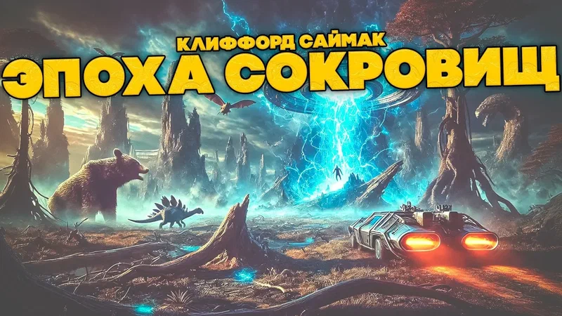 «Эпоха сокровищ» Клиффорда Саймака – это научно-фантастический рассказ, в котором ученый, работающий над созданием машины времени, из-за нехватки денег привлекают богатого охотника для финансирования своего проекта. Они соглашаются устроить охоту на вымерших доисторических животных в прошлом. Так начинается путешествие во времени. В ходе охоты герои случайно спасают доисторического человека, который в благодарность дарит им огромный драгоценный камень. Позже они находят пещеру, наполненную сокровищами: драгоценными камнями, металлами и произведениями искусства. Загадкой остаётся, кто и зачем оставил эти богатства в прошлом.