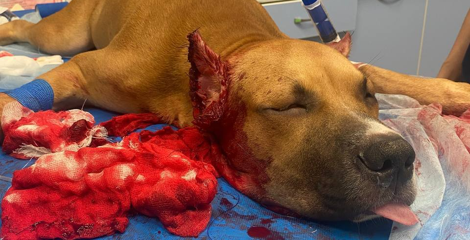 Данная собачка поступила в клинику с активным кровотечением после проведённой раннее операции - купирование ушей на дому. Левое ухо - без нареканий, правое ухо - кровотечение между каждыми швами. Владельцы пытались остановить кровь дома в течение нескольких часов - безрезультатно.