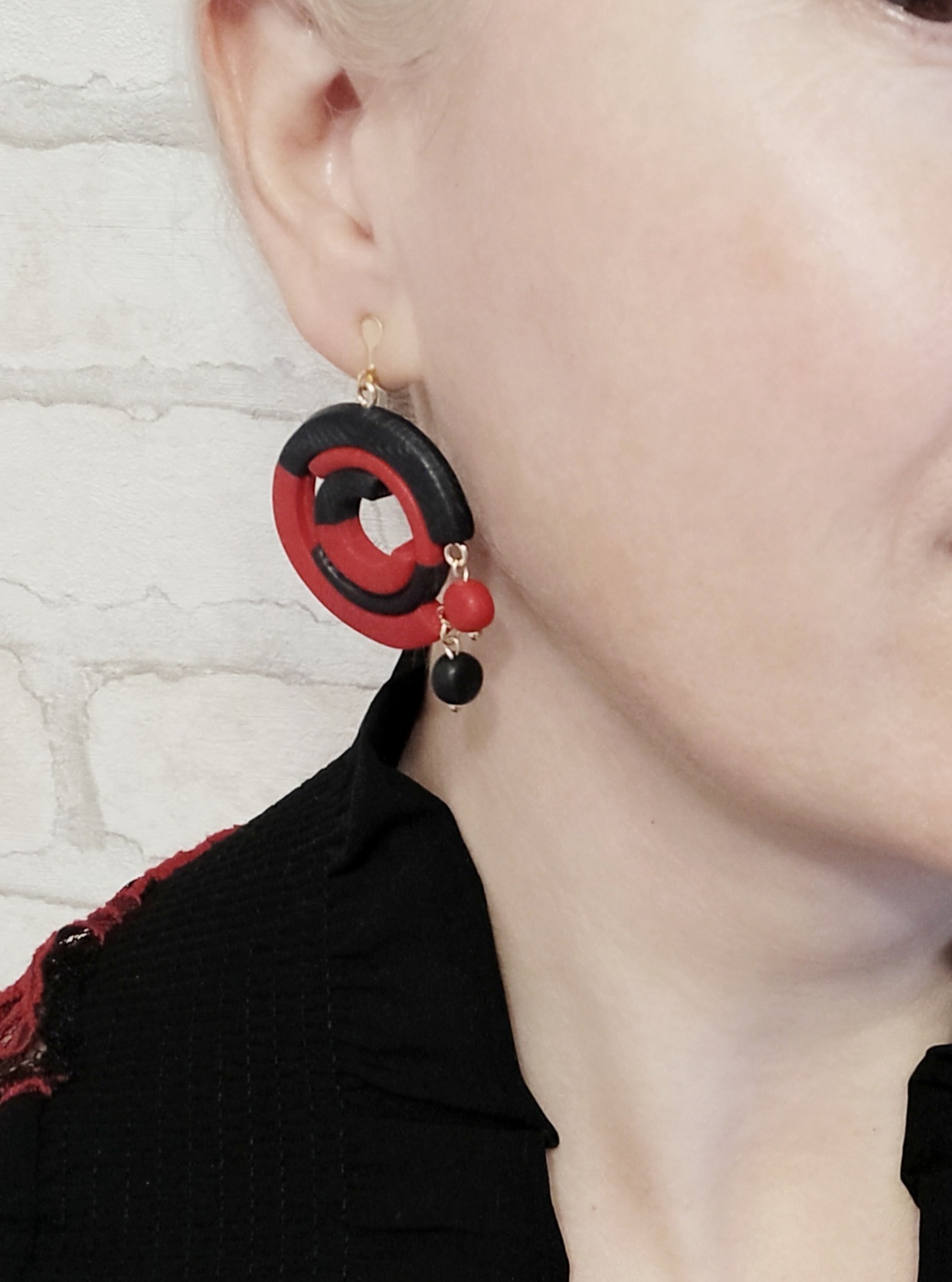 В общем и целом мне клипсы понравились, только контраст кажется немного резковатым, хотелось, чтобы серьги (клипсы) были немного понежнее. Поэтому буду пробовать сочетать с красным другие цвета. Должно быть ярко, но не грубо.