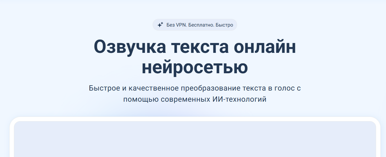 Быстрый старт: вставили текст → “Озвучить” → скачали аудио.