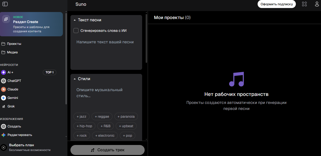 Вы задаете жанр, настроение и идею — и получаете трек с мелодией и вокалом. По сути, сервис сам “придумывает” и аранжировку, и вокальную подачу, поэтому он отлично заходит для демо-песен, интро/аутро и креативных набросков. Если вам нужно именно озвучить текст вашим голосом — проходите мимо, тут другая лига: музыка + вокал, а не TTS.