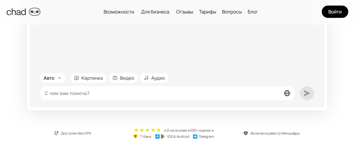 Chad AI — доступ к разным нейросетям, в том числе для голоса.