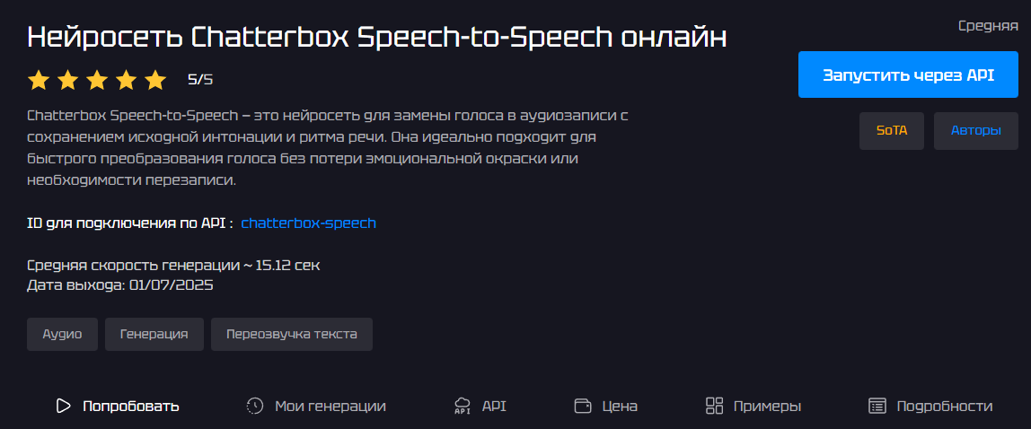 Модель для замены голоса в готовой аудиозаписи: вы загружаете речь, а на выходе получаете ту же фразу, но другим голосом. Сильная сторона — она сохраняет интонации, паузы и ритм, поэтому звучит живее, чем обычная озвучка “из текста”. Я бы выбирал ее для переозвучки реплик, сценок и диалогов, когда важна эмоциональная подача без перезаписи. Главное — дайте ей максимально чистый исходник, тогда результат заметно лучше.