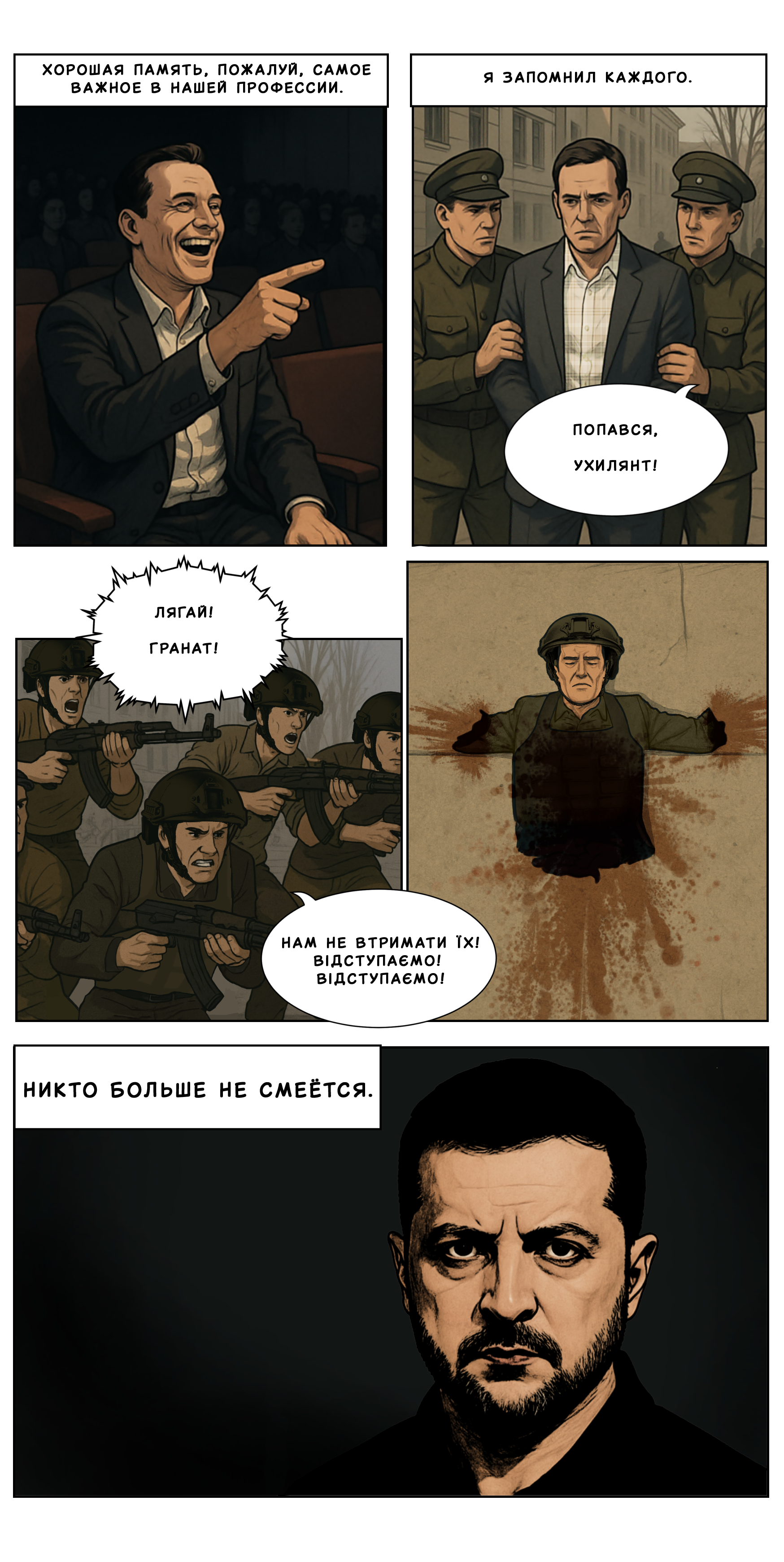 63 GovnevoyPuzir Клоун не зря помнит эти лица 1 месяц назад Автор идеи — искренне Ваш GovnevoyPuzir Художник — JustBear [моё] Политика Комиксы Владимир Зеленский Украина Спецоперация Юмор Черный юмор Длиннопост 16 11 1 1 1 Ещё 0