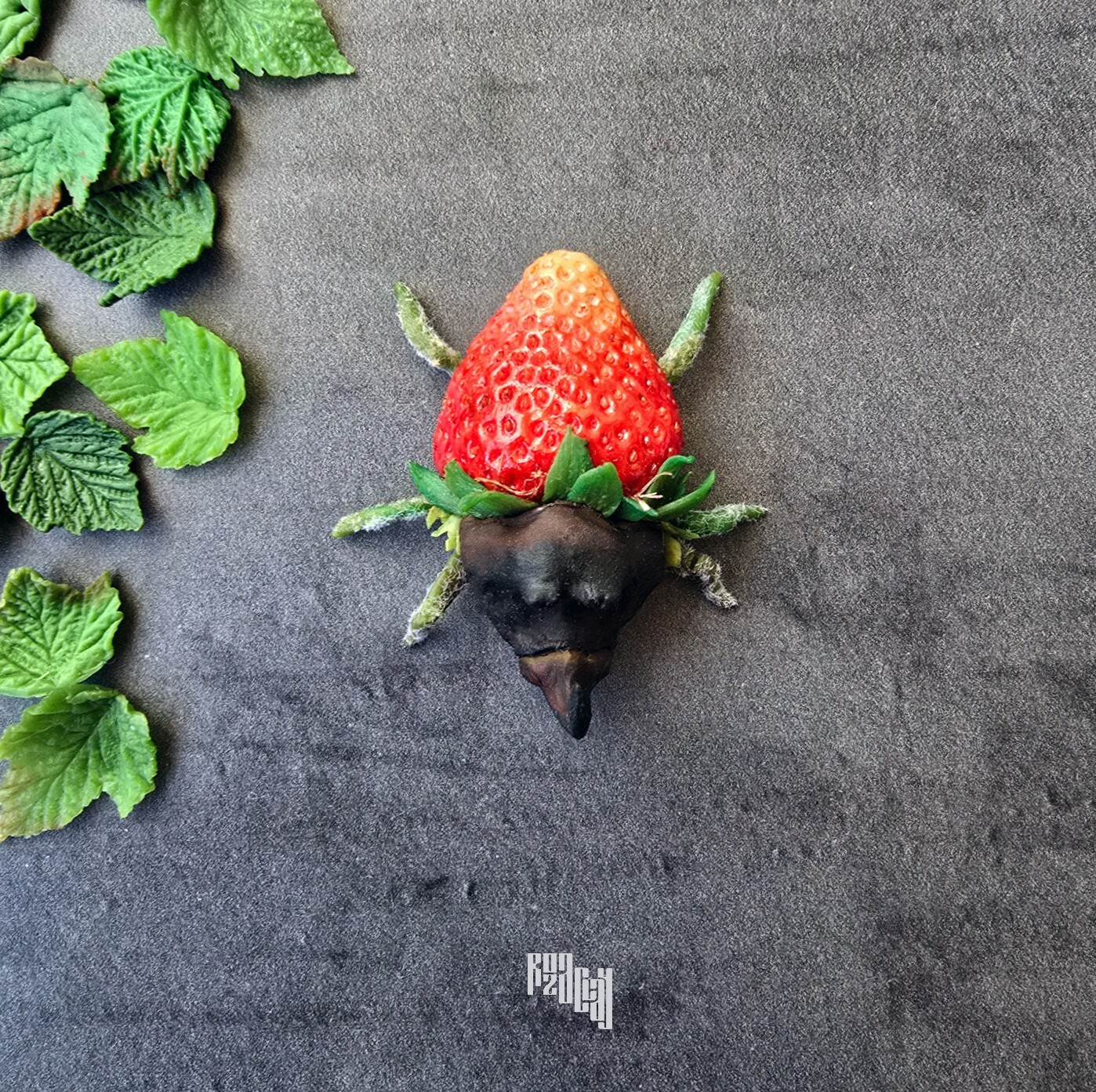 Материалы и инструменты: полимерная глина, сухая пастель, флок-пудра, лак матовый, витражная краска, проволочный каркас, бечевка, молд клубники