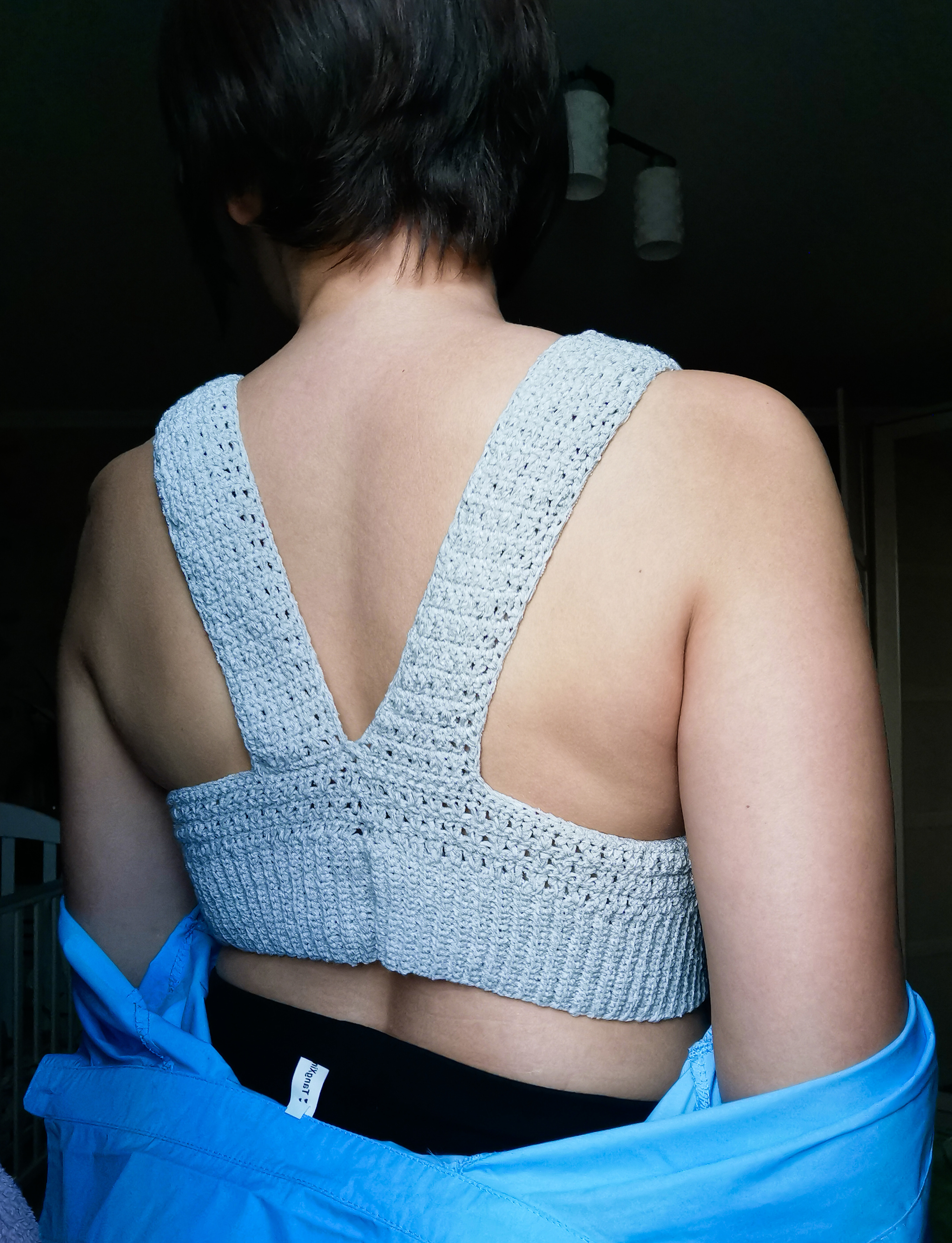 Хотела простой прямоугольной формы топ на лямках. Но решила не рисковать и вязать топ с чашечками.