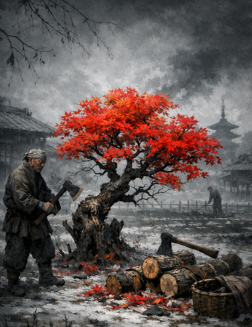 Садовник из пригорода Осаки, срубивший клён зимой 1944 года, вероятно, не думал об искусстве. Он думал о том, что семье холодно. Он сделал то, что сделал бы любой: выбрал выживание.