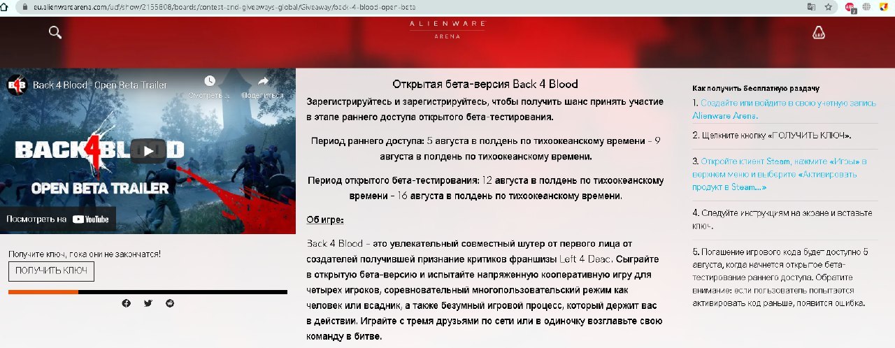 Сейчас можно получить ключ для бета-теста Back 4 Blood