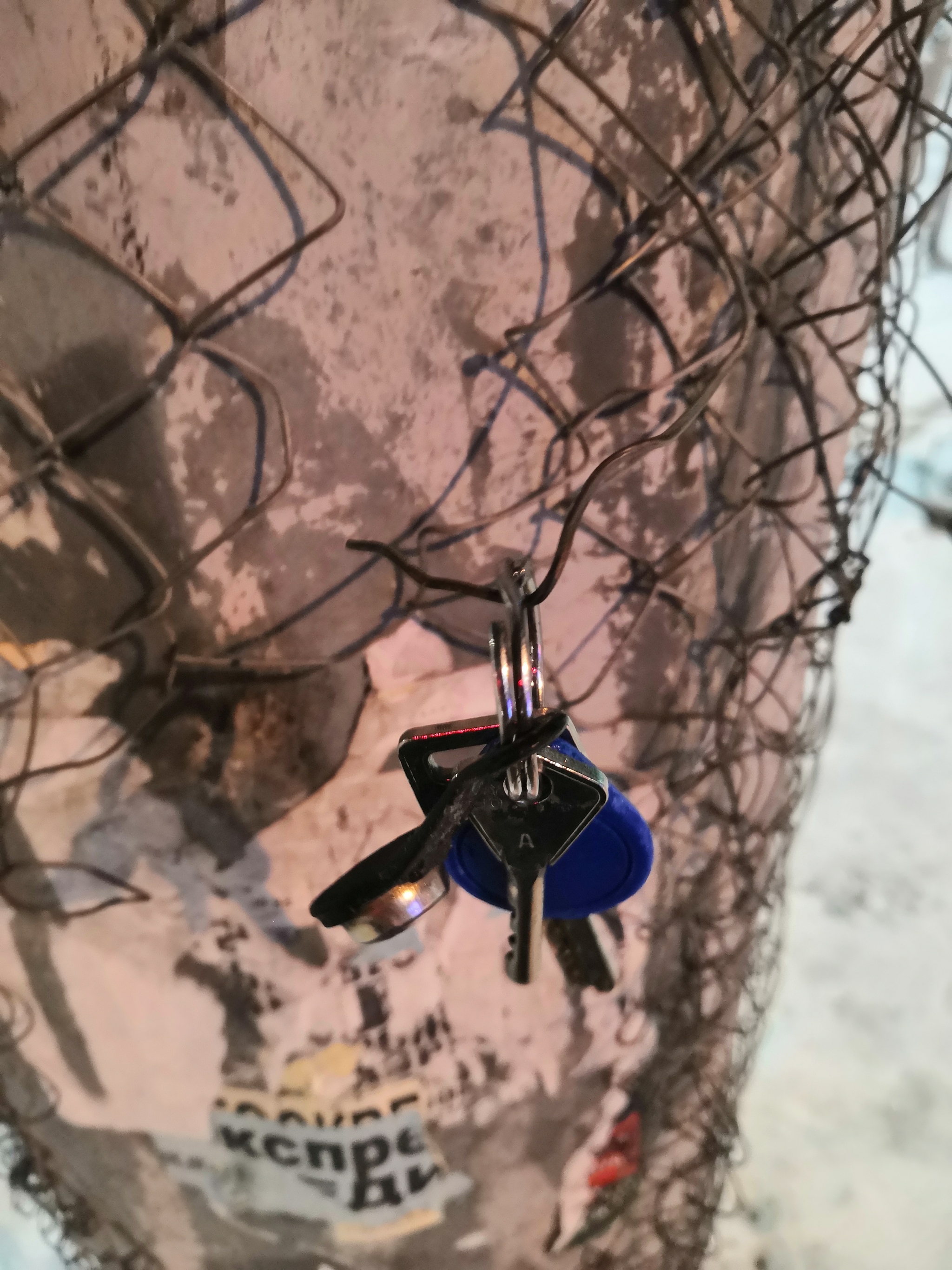 Жене говорю, я ключи потерял, она предлагает пройтись поискать, ну пошли значит тем же путём, идём ищем глазами, а вечером темно, ещё и снег пошёл, ну все, думаю где тут их найдешь.