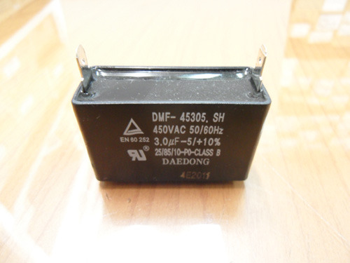 Да какая разница во сколько мест заходит эта пластина... Если нет маркировки для двух кондёров и трёх проводов, то и не стоит заморачиваться по этому поводу. Если уж совсем терзают смутные сомнения, то возьмите мультиметр и померьте сопротивление и ёмкость между центральным и крайними выводами.Я такие кондёры встречал в стиральных машинках, но там именно три вывода и две маркировки. Можешь загуглить "два конденсатора в одном корпусе".