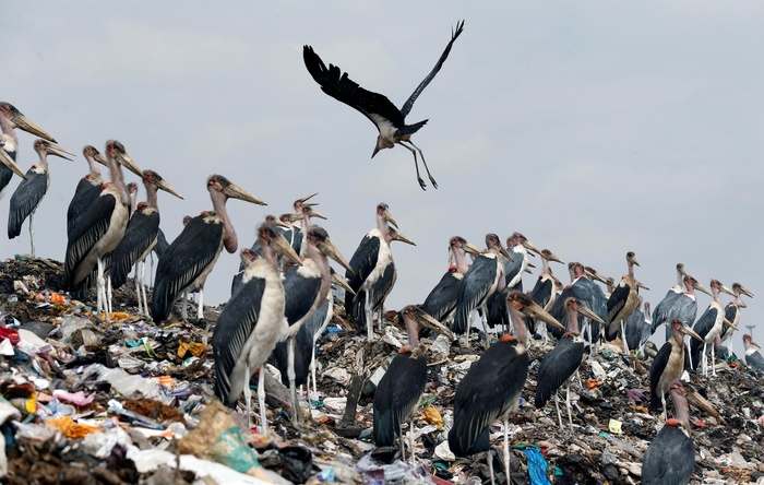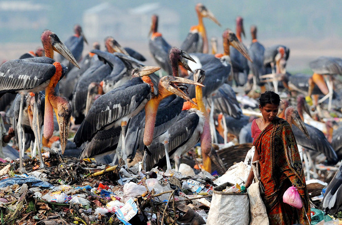 Марабу совсем не боятся человека. В африканских и индийских поселениях они ведут себя также, как голуби у нас. Свободно ходят по улицам, кушают на помойках и продают насвай. И это с учетом того, что птицы, в отличие от голубей, действительно здоровые.