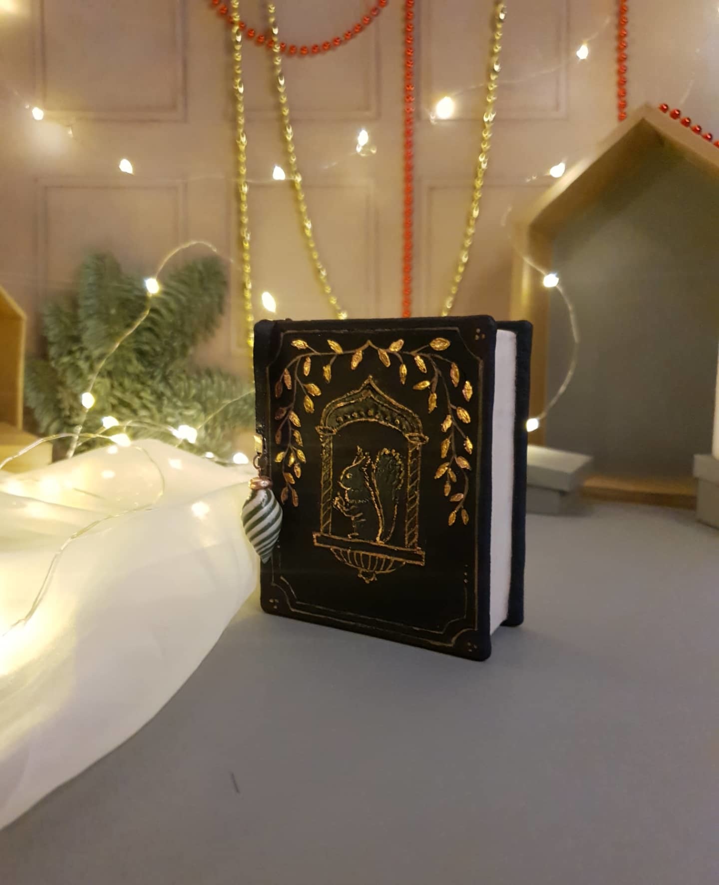 Страницы легко сгибаются, плюс глины! Есть место для хранения, всё таки это сюрпризница. Возможно немного мрачная для ёлки.)) Можно использовать и как шкатулку, поставить среди книжек.)
