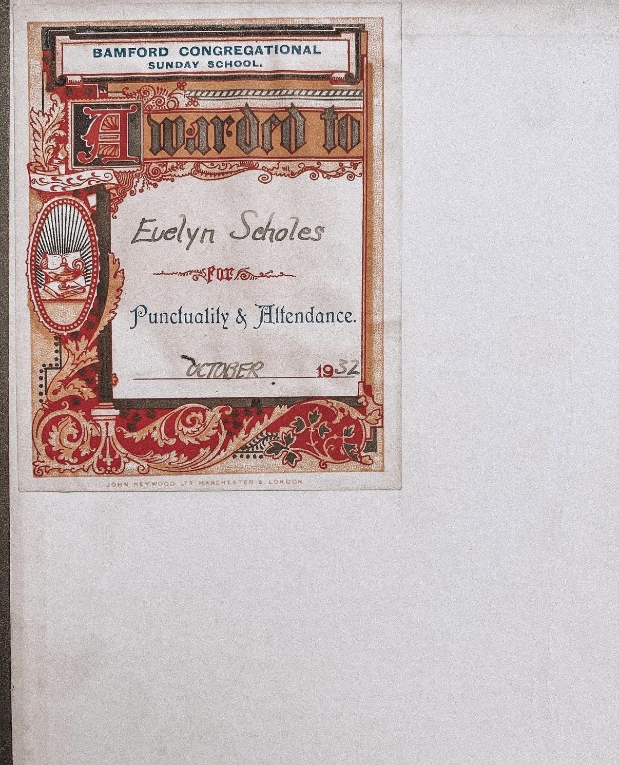 Судя по надписи, когда-то в далеком 1932 году эта книга была подарена маленькой девочке-школьнице по имени Эвелин Скоулз за хорошую посещаемость и пунктуальность.