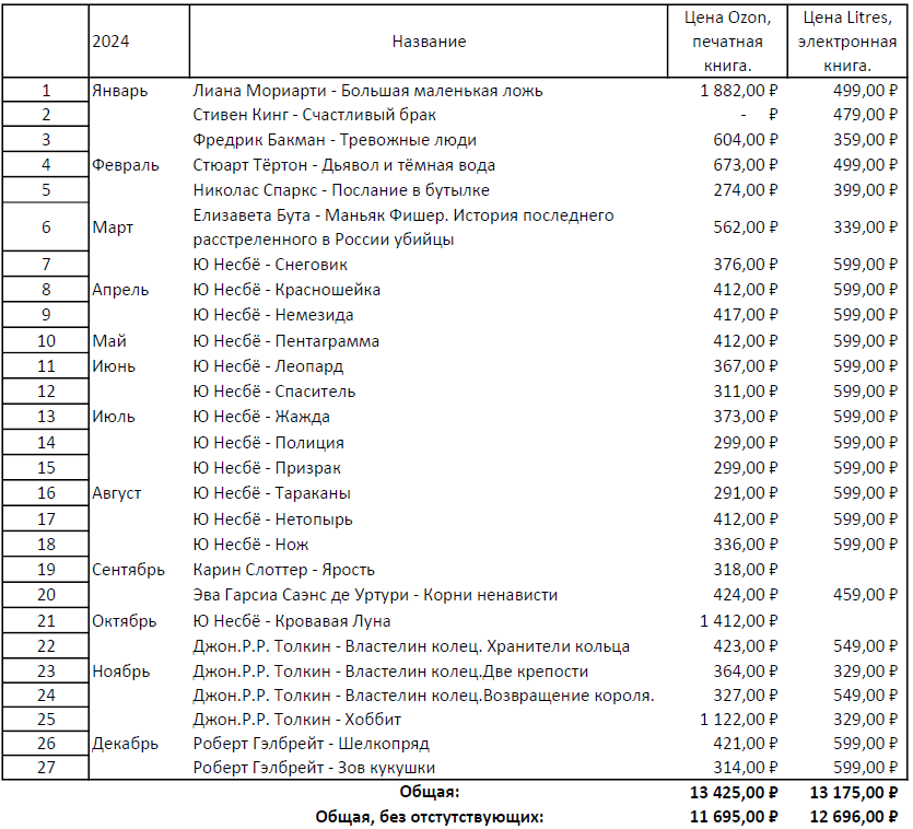 Учитывая, что последние годы все прочитанные книги отмечены, решил посчитать их стоимость. Сколько денег было сэкономлено, как в бумажном варианте, так и в электронке.