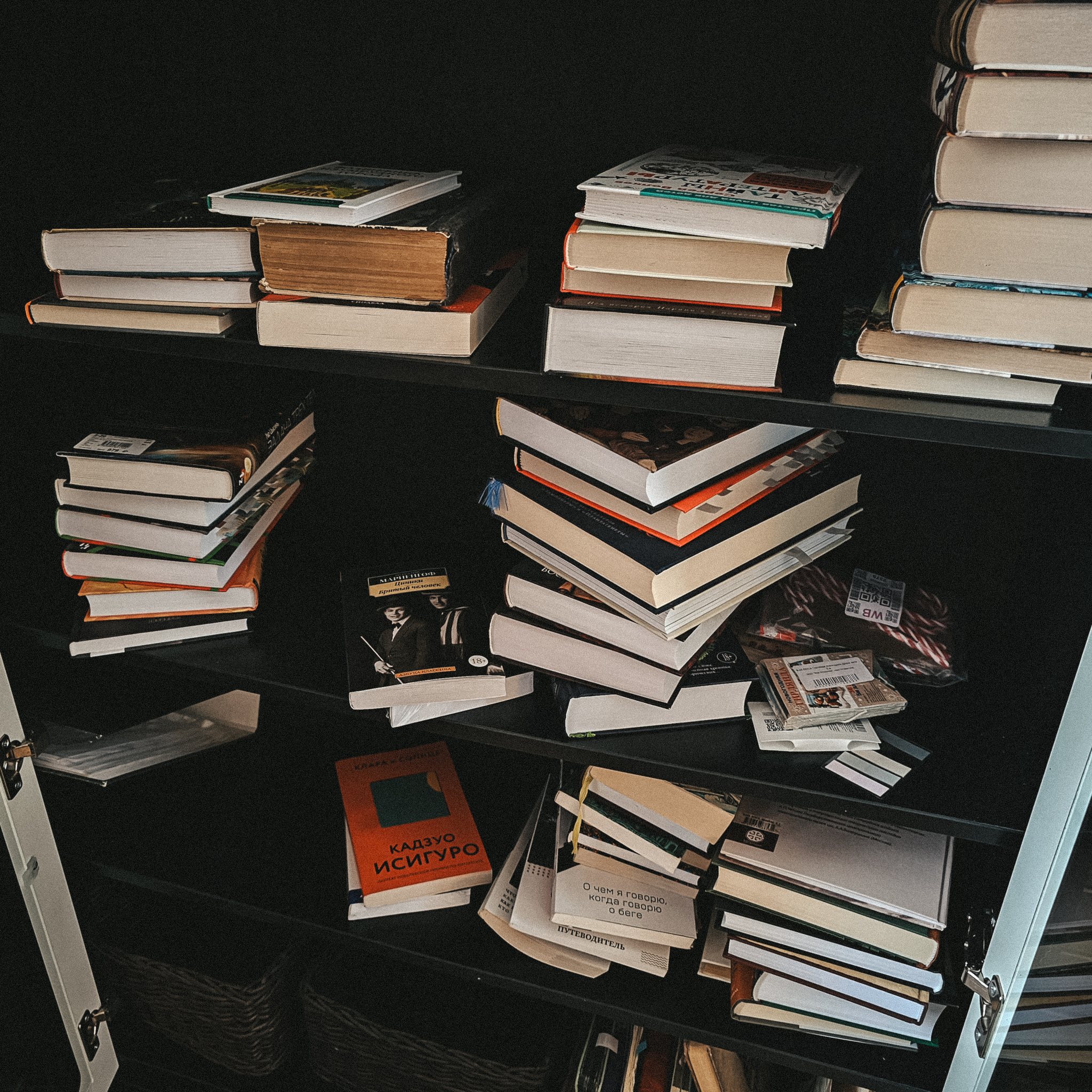 И я покажу часть своих полок. Читаю постоянно и много. Места под книги не хватает, поэтому, новые полки могут появиться где угодно. Два шкафа могли бы быть повместительнее))