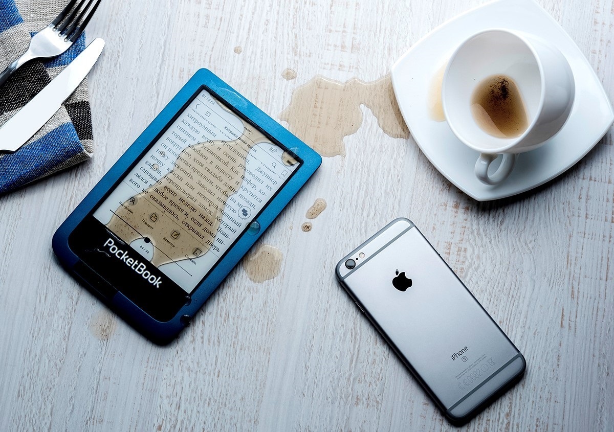 В 2017 году PocketBook не ленился и выпустил две новинки. Первая —грязе и водостойкий ридер-танк – PocketBook 641 Aqua 2. Который можно читать ванной и не бояться утопить. А можно читать за едой и не бояться пролить на него кофе. Или даже читать на пляже, обмазывая песком и купая в море – ему ничего не будет.