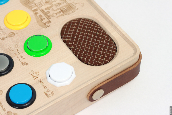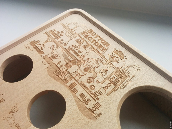 После обработки и покрытия лаком. Старался сохранить текстуру, поэтому попробовал 10, или 12 сортов лаков и масел — в итоге выбрал худший. Рисунок для гравировки делала подруга, она иллюстратор. Мы вдохновлялись элементами современного GUI от Teenage Engineering. Все кнопки — это разные модели от разных производителей. В иллюстрации под каждой кнопкой есть отсылки к производителям.