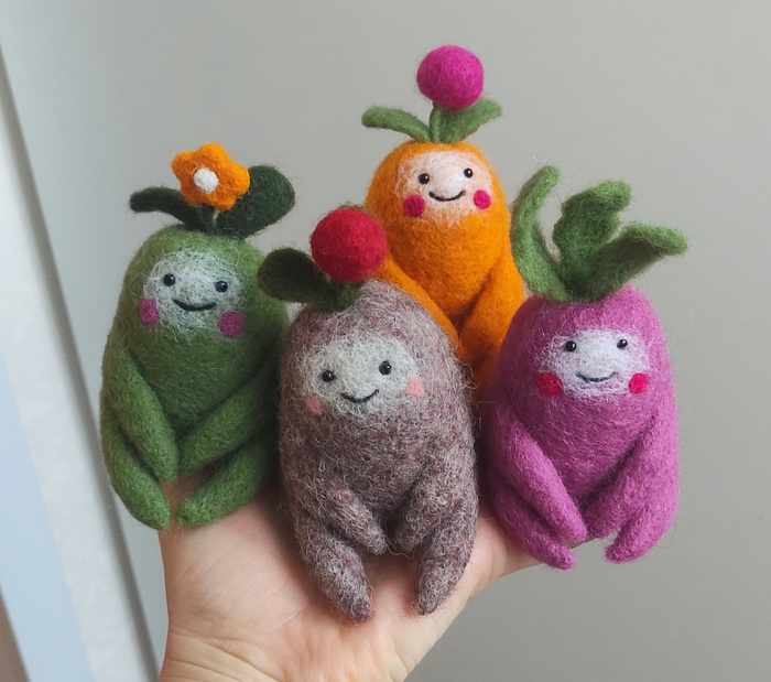 Было это пару лет назад, валянием шерсти я никогда особо не занималась, а сейчас захотелось. И родились две кочки и одна девочка с розовым окрасом. Как думаете, кого я изначально задумала? Интересно, получилось ли воплотить)