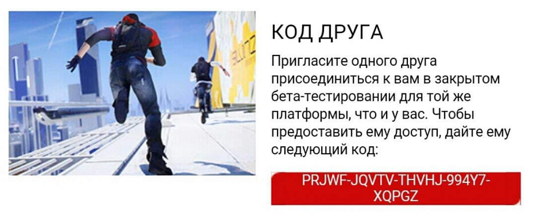Mastermind74 Код на закрытую бету Mirror's Edge Catalyst XBOX ONE 9 лет назад Друзей с карабоксами, нового поколения, у меня нет. Поэтому выкладываю так, чтобы не пропал код) [моё] Mirrors Edge Catalyst Xbox One Бета ЗБТ Код
