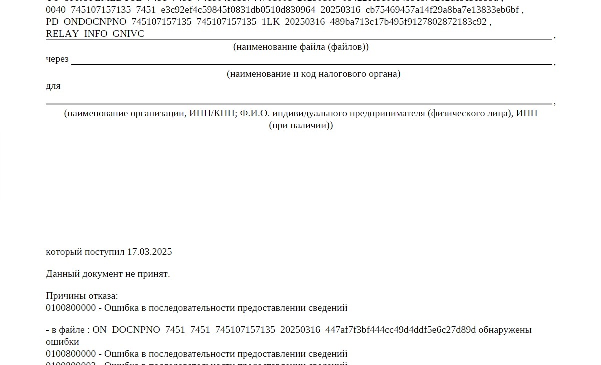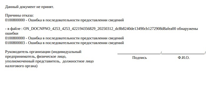 Код ошибки 0100800000, 0100800003 - Ошибка в последовательности предоставлении сведений