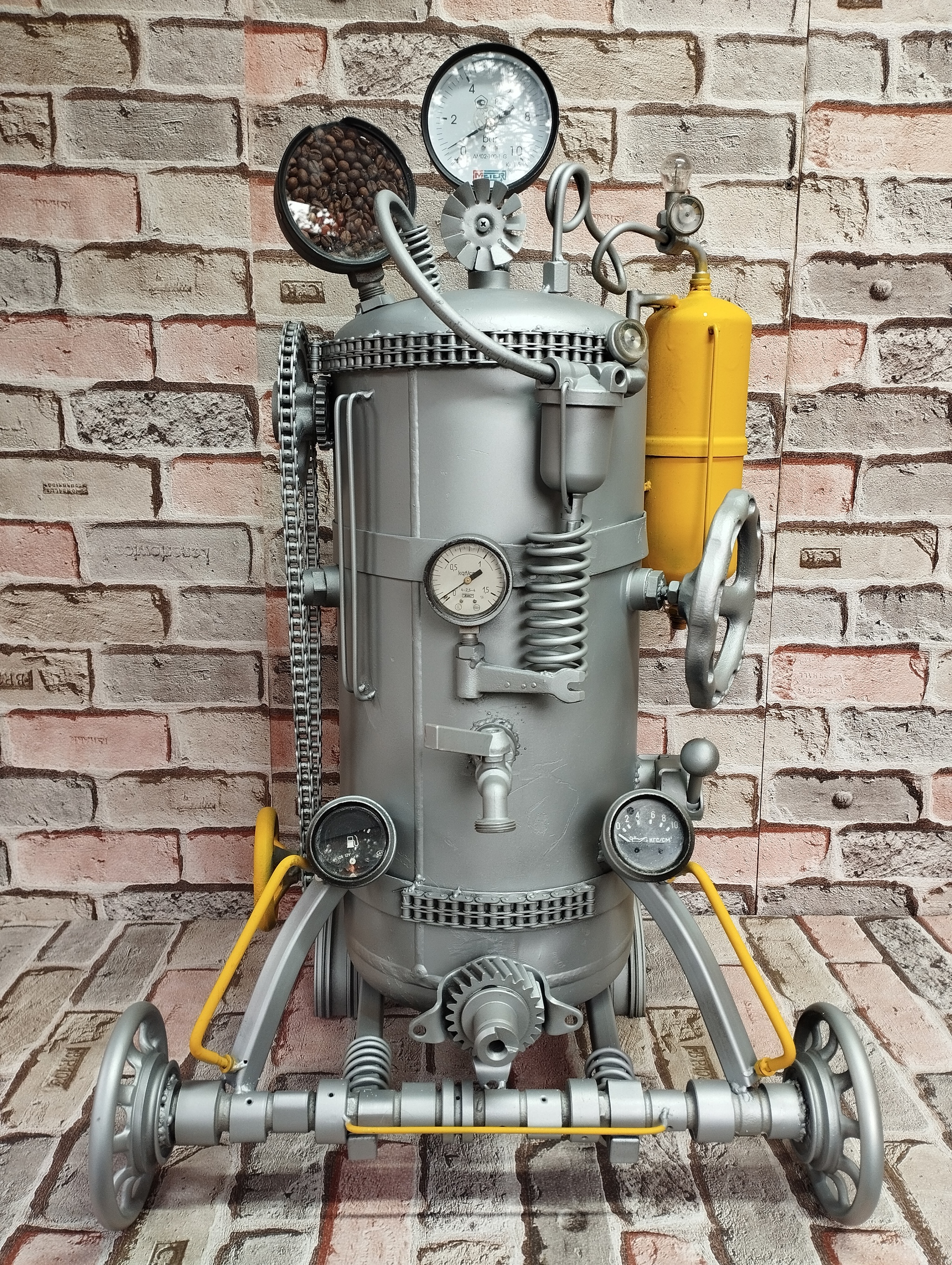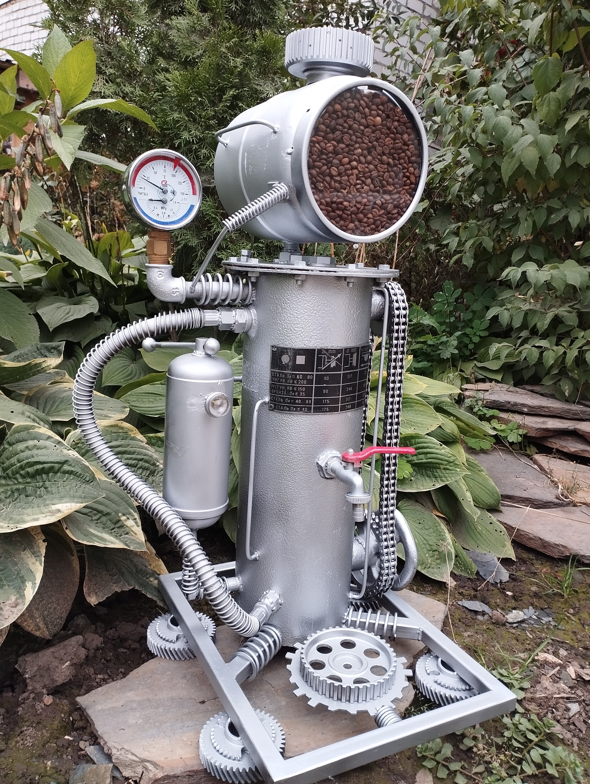 7 TaburetkaStalina Кофемашины дизельпанк 2 месяца назад Пришла как-то идея поделать парочку муляжей в виде кофемашин. Кальяны, самовары уже делал. Вот что получилось, вроде симпатично и интересно. Серую уже забрали в открывающуюся кофейню) [моё] Дизельпанк Поделки Стимпанк Длиннопост Ещё 0