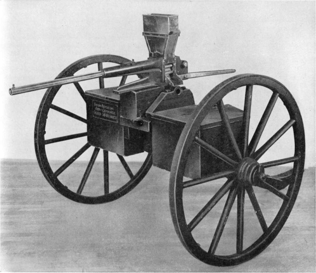 "Кофемолка" Агар с кривошипным приводом была едва ли не единственным конкурентом пулемета Гатлинга во время Гражданской войны в США. В отличии Гатлинга, у Агара был только один ствол. Коленвал поворачивал барабан, в который подавались патроны калибра .58 из бункера наверху. Однако из-за того, что ствол был всего один, он часто перегревался. Для решения этой проблемы в конструкцию был введен вентилятор, приводимый в действие еще одной рукояткой.