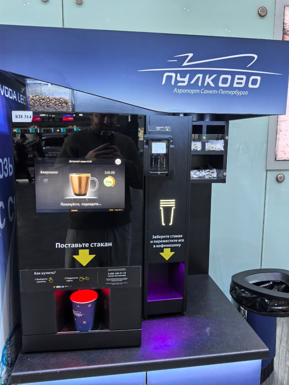 Увидела новость про новые кофейные автоматы в Пулково: один аппарат выдает стакан, другой уже наливает напиток.
