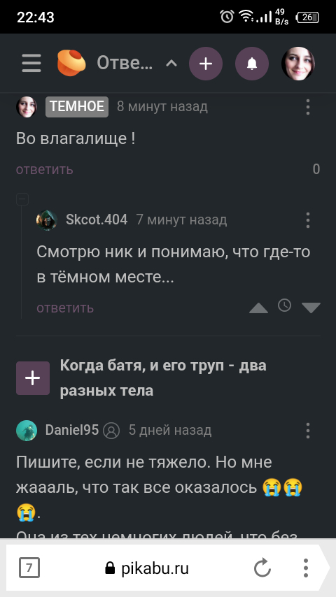 Я её не знал, она меня не знала тем более. Нас связывала только пара-тройка веток переписки в комментариях, где эта необыкновенная девушка приветливо и с улыбкой отвечала на мои самые разные глупые вопросы и давала жизненные советы. Как раз хотел ей четвертого ещё написать. Мне горько... 😢