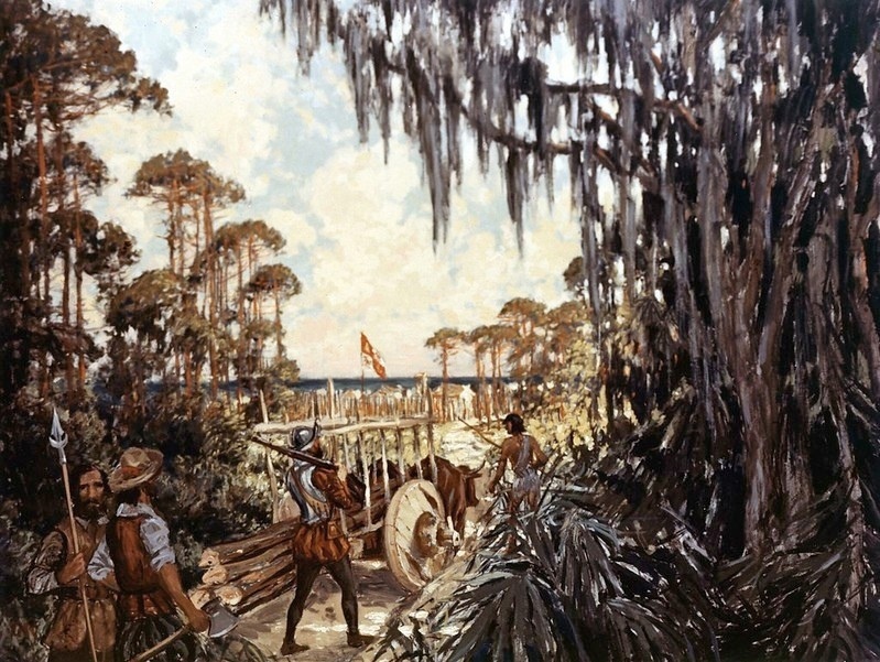 Таким образом, земли выше 36 градуса северной широты испанцев не интересовали в принципе. Несколько экспедиций выше 36 градуса было, например в 1539 году под началом Эрнандо де Сото. Однако вернувшийся на Кубу конкистадор писал, что во «Флориде» (испанцы считали Флоридой все побережье от Ки Вест до реки Св. Лаврентия) нету никакого золота и серебра, а население, в отличие от атцеков и инков – голожопые дикари, не знающие ни государства ни какого-то упорядоченного общества. То есть в случае колонизации общество это придется создавать с нуля, а не как в Мексике и Перу – просто перебить верхушку и заместить ее. Кроме того, эти земли находились севернее стандартных маршрутов испанских кораблей.
