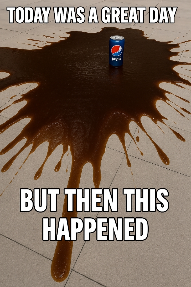 LampOS2012 Когда даже Pepsi говорит: "Хватит" 3 месяца назад Решил начать день с баночки Pepsi. Всё шло идеально… ровно до этого момента. 🤦♂️» Мемы Pepsi Fail Юмор Жизнь Настроение Утро Понедельник Ещё 0