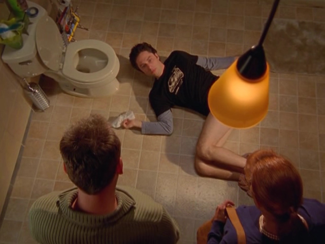 В очень страшном кино вроде было такое. Мужик на столе без сознания. Его приводят в себя типа где тетка что случилось.- Не помню мы играли в кости потом все потемнело. Смотрит на кости " о шестерки" и уебывается в полку над головой)
