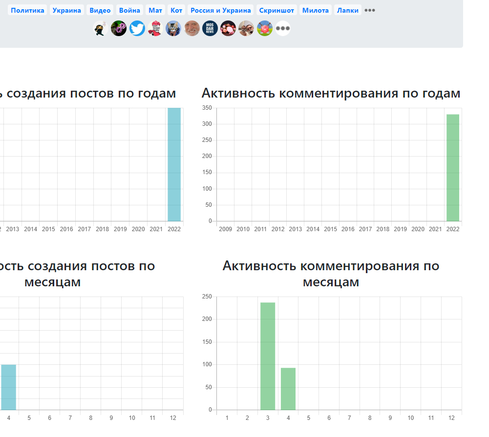 Единственный минус у тех кто ники меняли после слива данных пользователей статистика кривая. Допустим по мне: всего 44 комментария начиная с марта. Так что после смены ника я видимо стал консервой.