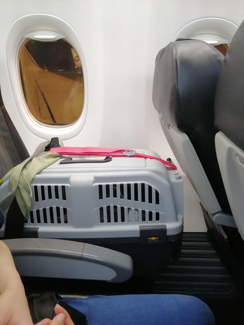 S7 разрешает провоз животных до 20кг на соседнем кресле в переноске размером не более 55х40х40. Оплачивается как взрослый билет, очень удобно оформляется на сайте. Мы так один раз летали в Сочи и два раза в Анталью.