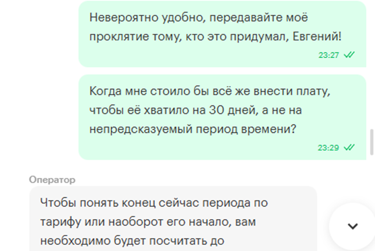 Из-за этого дата списания денег в каждом новом месяце приходится на другое число, а если интернетом несколько месяцев не пользоваться, то начинает казаться вообще рандомной.