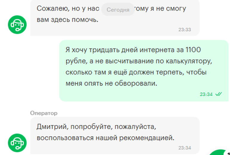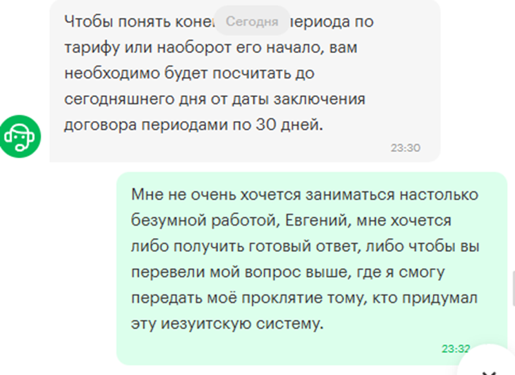 Приезжаю я в деревню, разгружаю вещи, затапливаю печку, торопливо включаю роутер, чтобы поскорее новости почитать и снова стать культурным человеком. Остаётся только денег мегафону закинуть, 1100 рублей за анлим. Но... нельзя, опыт прошлого года показал, что можно закинуть 1100, а на следующий день они закончатся, ведь хватает их не на месяц, и не на 28 дней, а на 30 дней считая с ДАТЫ ЗАКЛЮЧЕНИЯ ДОГОВОРА, когда бы там они ни была.