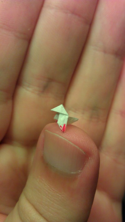 Поддержу автора, делал года 4 назад из 1 см? бумаги. Птица из игры Хеви Рейн. Живёт у меня в ручке )