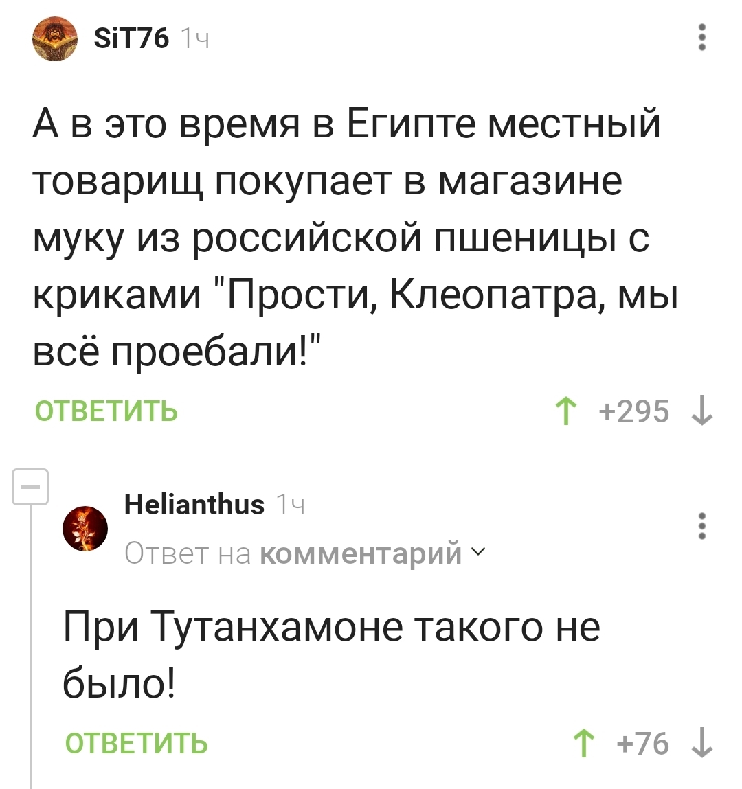 63 Wellikan Когда наконец-то узнал, что в Пятерочке продают картошку из Египта... 10 месяцев назад #comment_340754892 Пшеница Египет Комментарии на Пикабу Длиннопост Мат Скриншот 5 1 Ещё 0