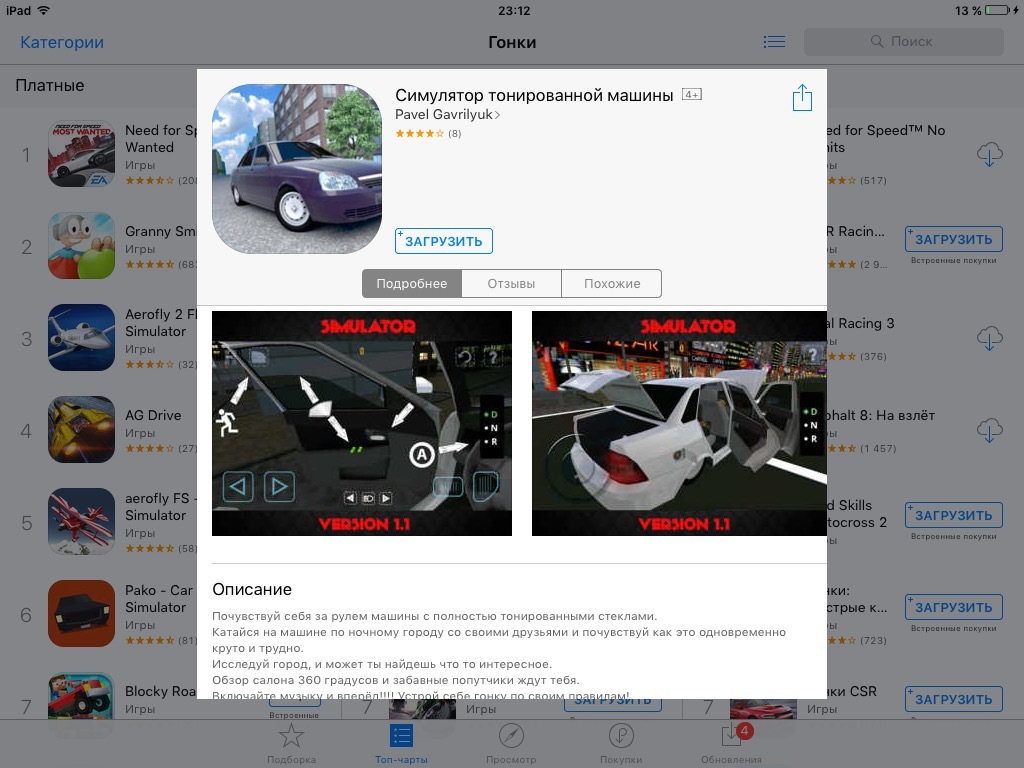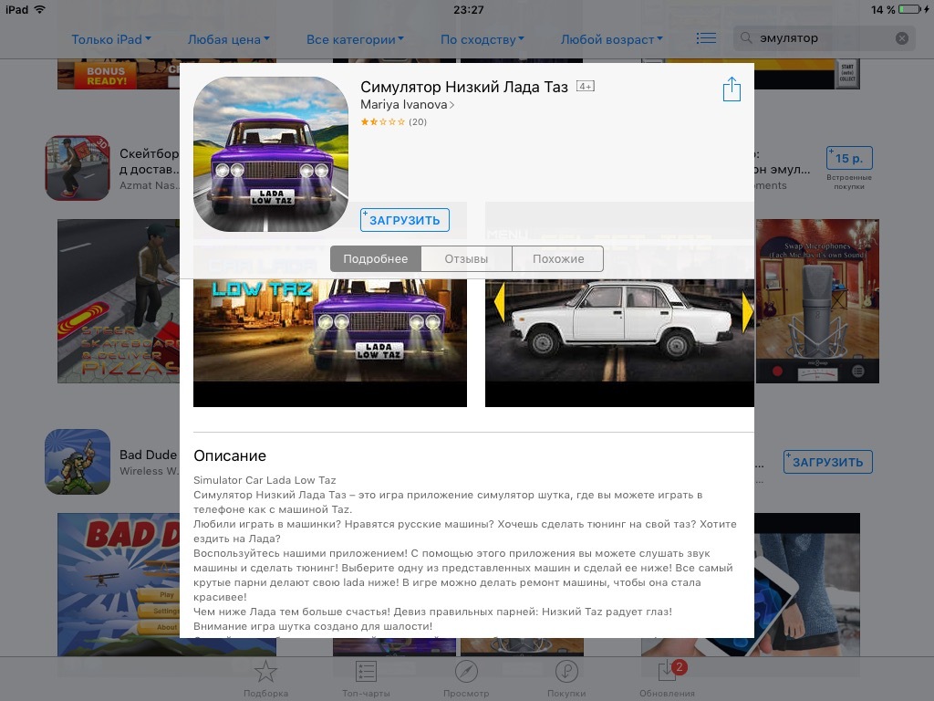 Zubr14 Когда не хватило на настоящую машину.. 9 лет назад Смотрел аппстор в поисках приложений новых и случайно наткнулся на сие чудо))) [моё] Приложение Тазы валят Четкий пацан