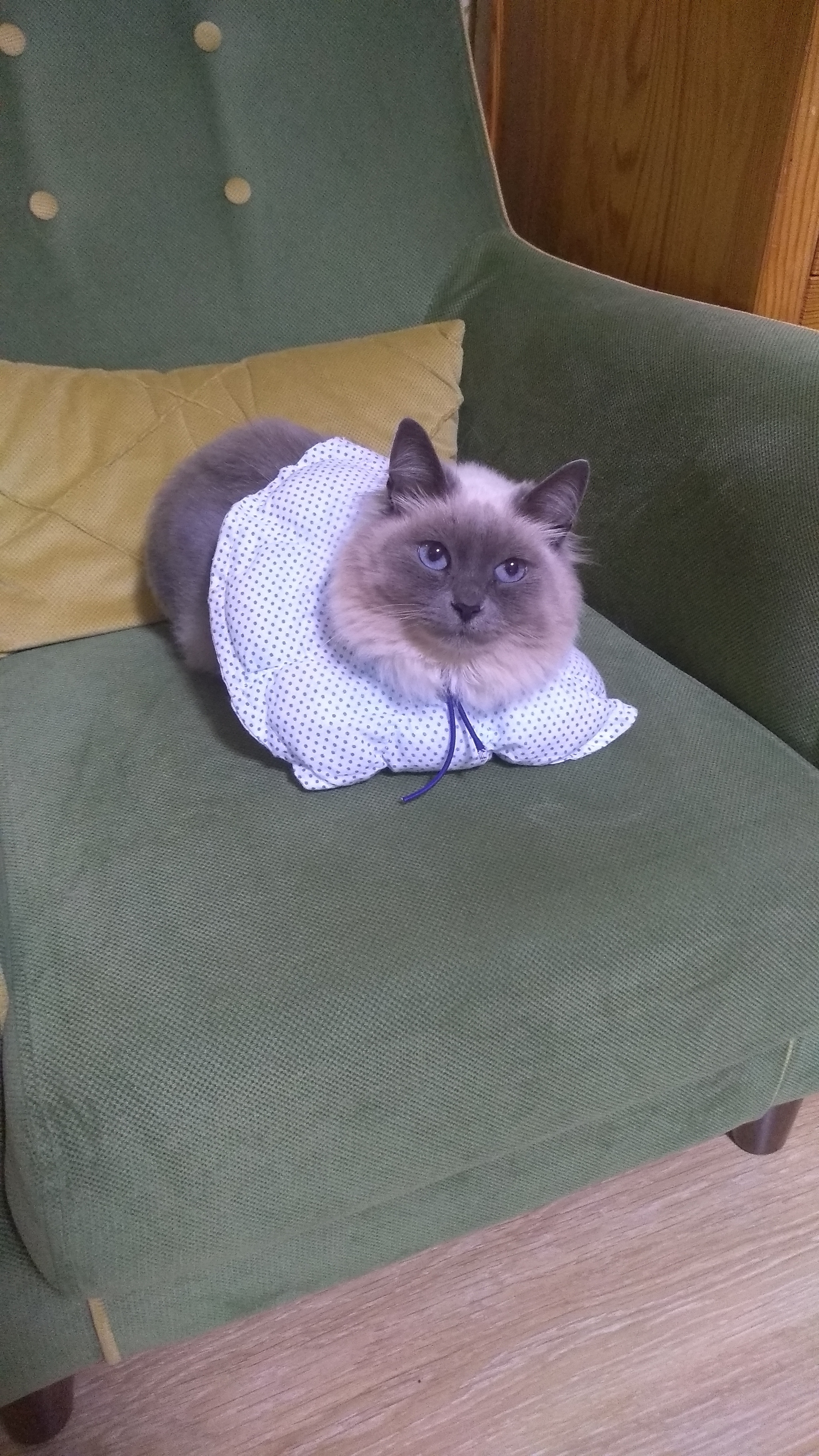 Да как у вас коты у всех так спокойно в этом ходят, моя повязку сдирает сидит по 10-12 часов нон стоп пока не снимут либо не разорвет, а если "торшер" этот надеть ходит исключительно задним ходом снося все на пути и так же активно снимает. При наличии любого из этих двух атрибутов туалет там где приспичило и ни о какой еде и воде речи даже не идет