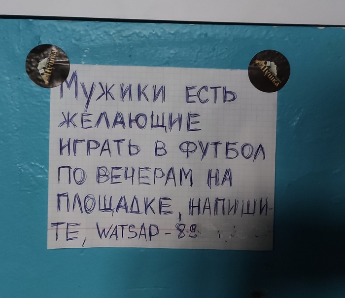 3922 oplyat Когда приехал в гости 3 года назад Собрался к маме в гости, зашёл в подъезд, а там предложение от которого тяжело отказаться. Но мамины вкусняхи оказались сильнее все таки 🙂 Может го в футбол мужики? [моё] Жизнь Футбол Подъезд Объявление Соседи 37 7 1 Ещё 0