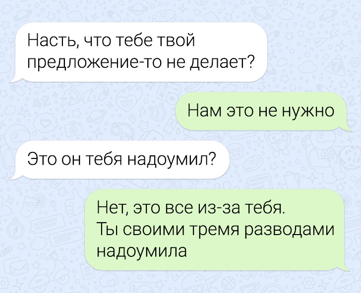 3534 user6254696 1 год назад Когда пример перед глазами Юмор Девушки Отношения Брак (супружество) Развод (расторжение брака) Переписка Скриншот 104 14 6 3 3 Ещё 0