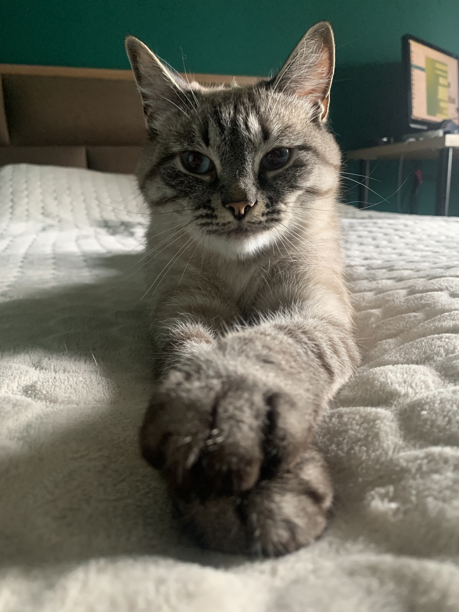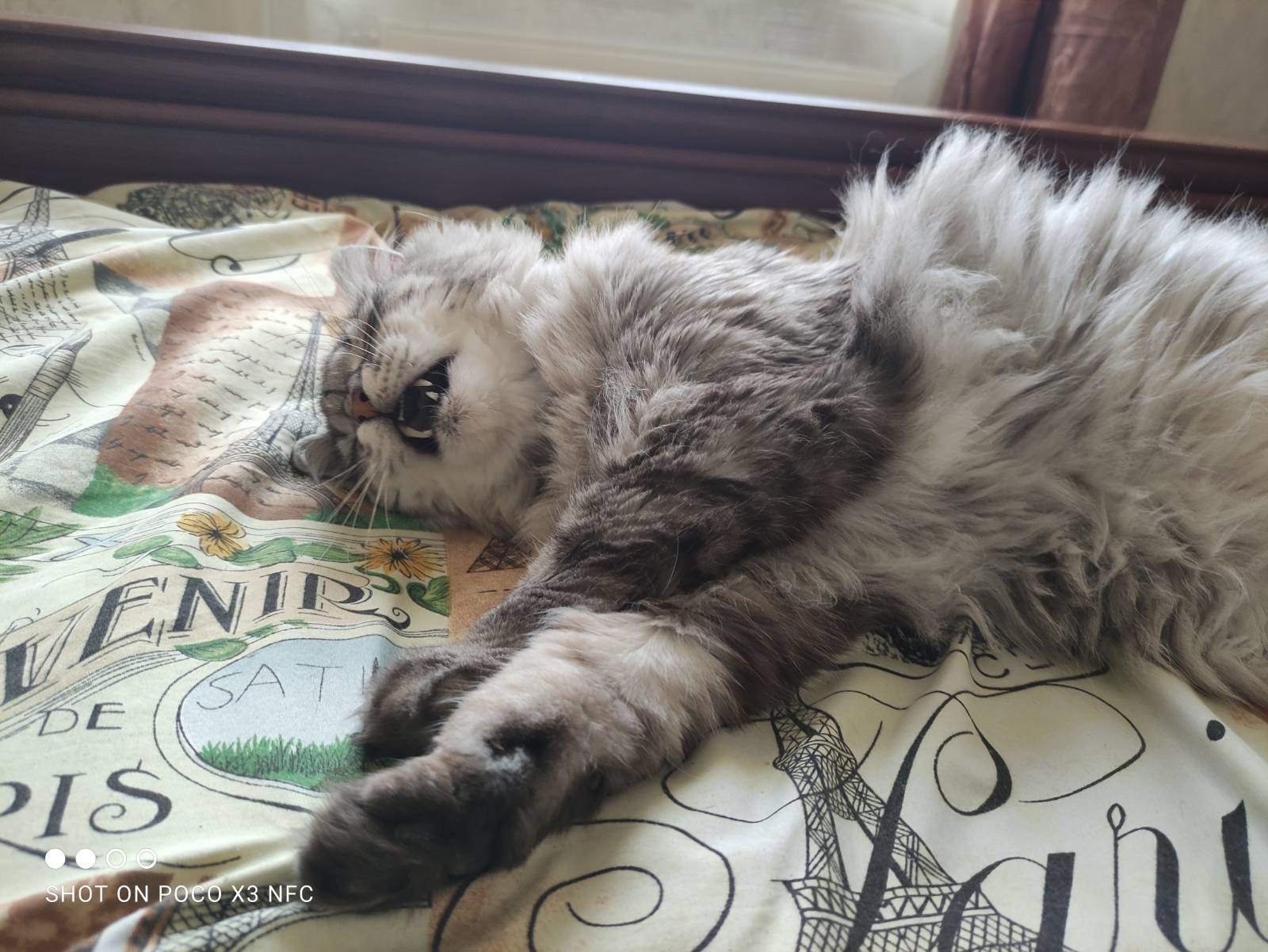 Изверги же, говорю))) а если серьёзно, то он за птицами понаблюдал, пришёл, и вот так лёг) переодически ещё лежал и мявкал) мне кажется, что он жаловался, что летать не может)