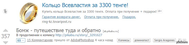 3 ft999 10 лет назад Когда реклама и пост на пикабу дополняют друг друга. [моё] Реклама Пикабу Властелин колец