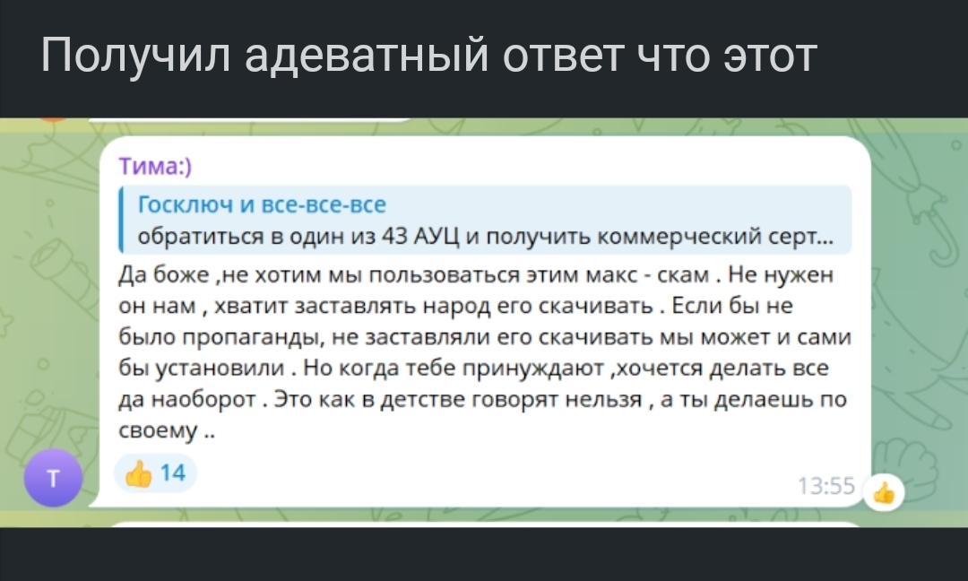 Интересно они через принуждение использование ГОВНО Макса так стимулируют использование Усиленных Квалифированных Электронных Подписей ? :)