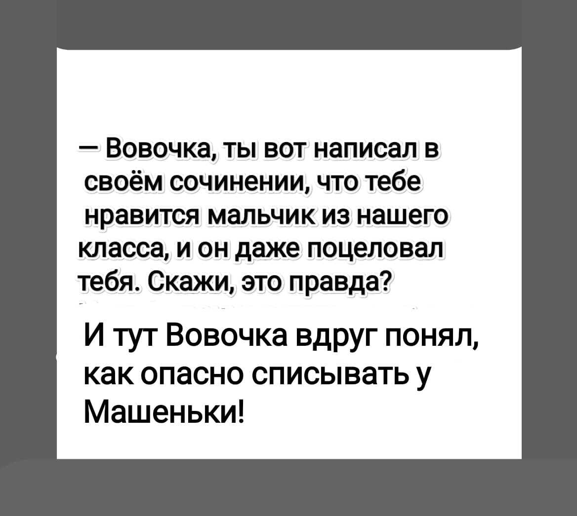 15 andreyvenzel86 Баяны Когда списываешь, не читая, ибо время поджимает - перемена не резиновая 10 месяцев назад Юмор Скриншот Школьники Вовочка Ещё 0