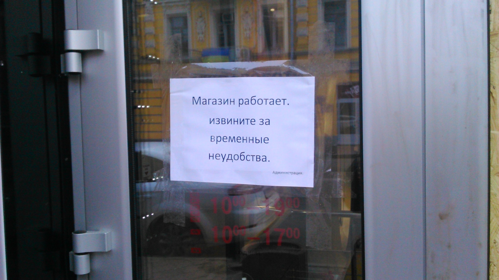 3 gorodnya Когда тебе приносят неудобства-2 9 лет назад В ответ на пост http://pikabu.ru/story/kogda_tebe_prinosyat_neudobstva_39403... [моё] Магазин Работает Неудобство